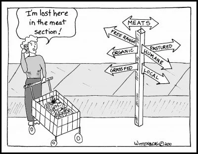 If you can’t find meat with one of these labels at your store, consider finding a farmers’ market near you. Or you can buy meat by mail. Or you could stock up on humanely raised meat when you visit a city near you – cities are more likely to have a humane butcher shop.